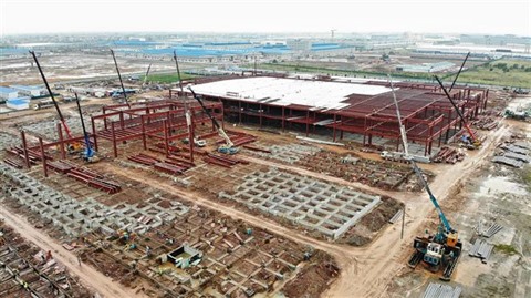 | Sur le chantier de l'usine Fukang Technology dans le parc industriel de Quang Châu, province de Bac Giang (Nord) du groupe Foxconn en 2021. |
