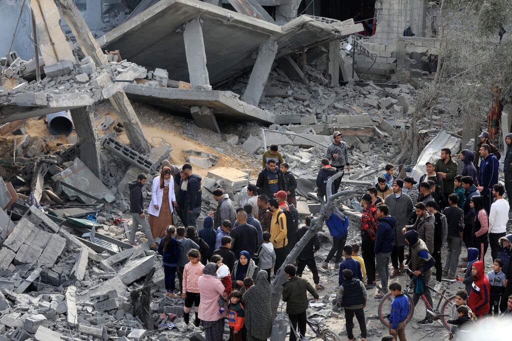 | Des immeubles détruits par des bombardement israélien à Rafah, dans la bande de Gaza. |
