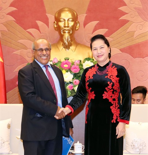 | La présidente de l’Assemblée nationale Nguyên Thi Kim Ngân avec le coordinateur résident de l’ONU et représentant résident du PNUD, Kamal Malhotra. |