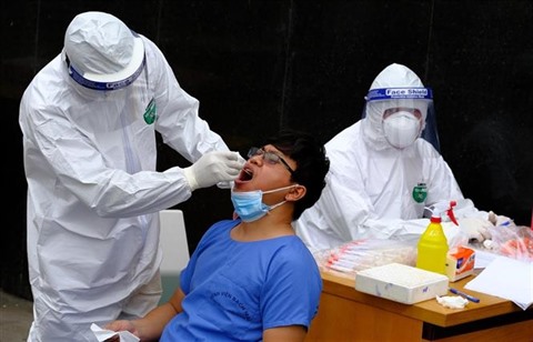 | Des agents de santé effectuent des tests de dépistage du coronavirus. |