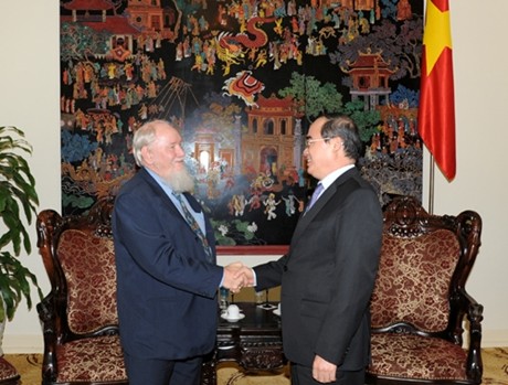 | Le vice-Premier ministre Nguyên Thiên Nhân (droite) et le conseiller indépendant de l'Union internationale pour la conservation de la nature, Peter Hitchcock, le 3 octobr |