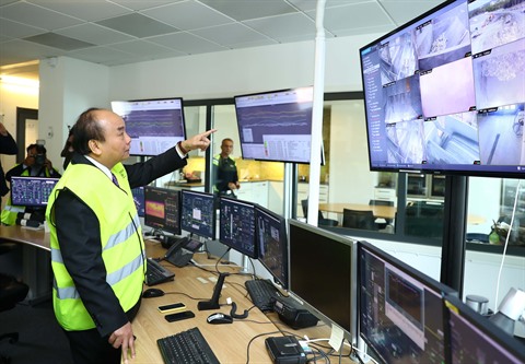 | Le Premier ministre Nguyên Xuân Phuc dans la salle de contrôle de Stockholm Exergi, le 28 mai en Suède. |