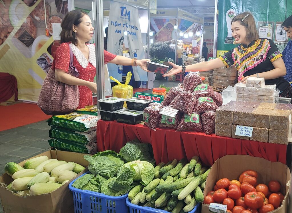 | À la foire de produits verts pour les consomateurs de Hanoï, en avril dernier. |