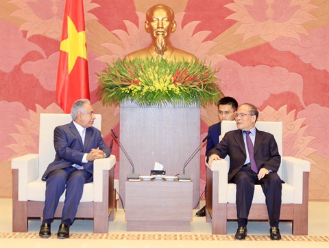 | Le président de l’Assemblée nationale, Nguyên Sinh Hùng (droite), a reçu le 19 août à Hanoi l’ambassadeur d'Arabie saoudite, Dakhil Al Johani. |