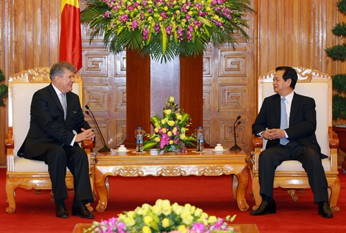 | Le Premier ministre Nguyên Tân Dung (droite) et l'ambassadeur russe Andrei Kovtun, le 3 décembre à Hanoi. |