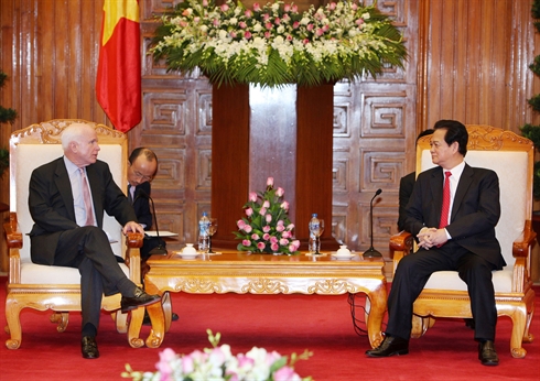 | Le Premier ministre Nguyên Tân Dung (droite) a reçu le 8 août à Hanoi le sénateur américain John McCain. Photo : Lâm Khanh/VNA/CVN |