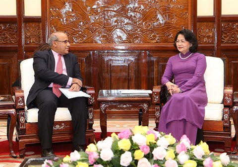| La vice-présidente de la République, Dang Thi Ngoc Thinh, a accueilli vendredi 4 août à Hanoï le représentant en chef de l'UNICEF au Vietnam, Youssouf Abdel-Jelil. |
