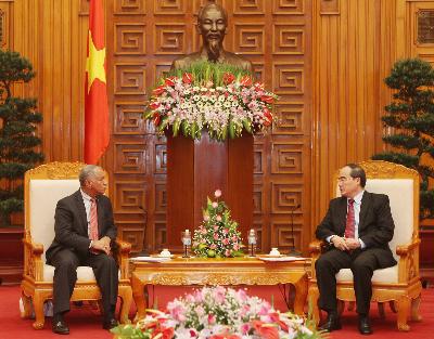 | Le vice-Premier ministre Nguyên Thiên Nhân (droite) reçoit le directeur général de la NASA, Charles F. Bolden, le 11 décembre à Hanoi. |
