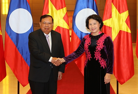 | La présidente de l'AN du Vietnam, Nguyên Thi Kim Ngân, et le secrétaire général du PPRL et président du Laos, Bounnhang Vorachit. |
