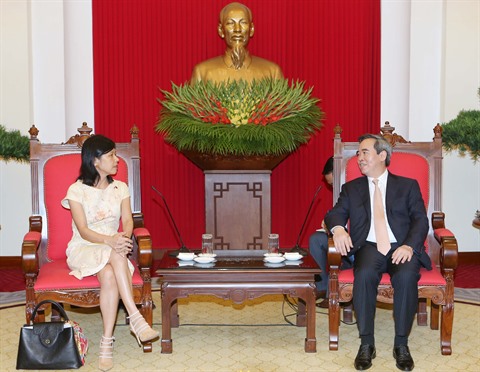 | Nguyên Van Binh, membre du Bureau politique et chef de la Commission de l’économie du CC du PCV, et l'ambassadrice du Canada au Vietnam Ping Kitnikone. |