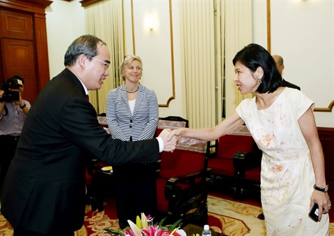 | Le président du Front de la Patrie du Vietnam, Nguyên Thiên Nhân, et l'ambassadrice du Canada au Vietnam, Ping Kitnikone. |
