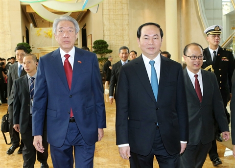 | Le président Trân Dai Quang (droite) et le vice-Premier ministre singapourien Teo Chee Hean, le 30 août à Singapour. |