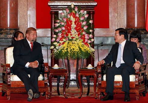 | Le président de la République, Truong Tân Sang (droite), et le président de la Cour suprême de Slovaquie, Stefan Harabin, le 3 juin à Hanoi. |