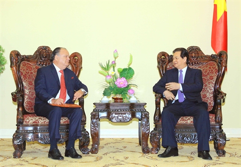 | Le Premier ministre Nguyên Tân Dung (droite) reçoit le 13 mai l'ambassadeur du Pérou au Vietnam, Carlos Berninzon. |