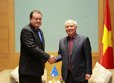 Le vice-président de l'Assemblée nationale (AN) vietnamienne Uông Chu Luu a remercié la Micronésie pour avoir accordé 25.000 dollars au Vietnam pour régler des conséquences du typhon Hainan. "Les relations politiques entre les deux pays ont connu un bon développement mais la coopération bilatérale en matière d'économie, de commerce, d'investissement, de culture et de tourisme ne correspondent pas encore aux potentialités des deux pays", a-t-il estimé.