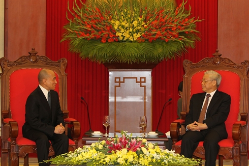 | Le secrétaire général du PCV, Nguyên Phú Trong (droite), a eu une entrevue le 25 septembre à Hanoi avec le roi du Cambodge, Norodom Sihamoni. |