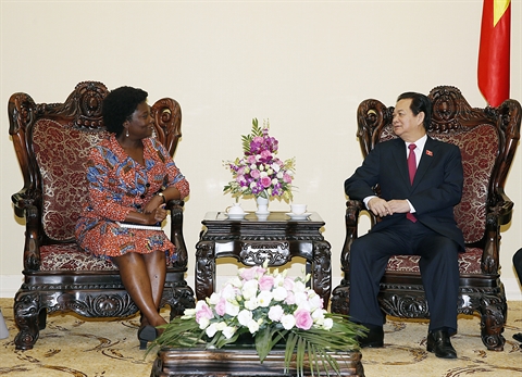 | Le Premier ministre Nguyên Tân Dung et la directrice générale de la BM, Victoria Kwakwa, le 30 mars à Hanoi. |