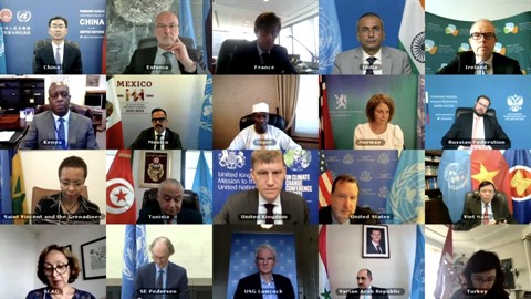 | Réunion en ligne du Conseil de sécurité de l'ONU sur la situation en Syrie, tenue le 26 mai. |