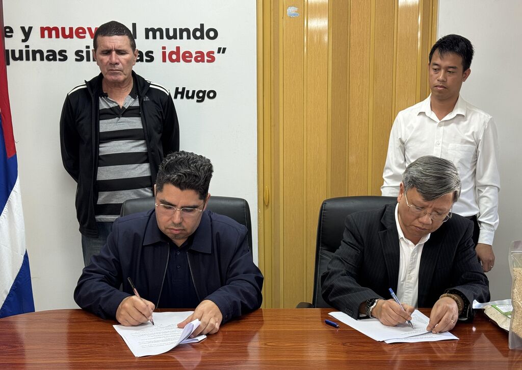 Les représentants des deux parties ont signé le procès-verbal de remise des 250 tonnes de riz, première livraison effectuée par le Vietnam à Cuba en 2026 dans le cadre de l’accord bilatéral. Ce lot est issu de la variété hybride CT16, dont le rendement dépasse sept tonnes de paddy frais par ha, actuellement cultivée par AgriVMA sur plus de 1.000 ha dans la municipalité de Los Palacios, province de Pinar del Río.
