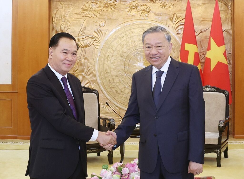 Tô Lâm a salué la visite de Thongsalith Mangnomek, qui intervient à un moment où les deux pays mettent en œuvre les Résolutions de leurs Congrès nationaux et leurs plans de développement socio-économique, et organisent des Congrès des Partis à tous les niveaux en prévision du Congrès national de chaque nation début 2026. Cette visite contribue à renforcer la solidarité particulière entre le Vietnam et le Laos et la coopération traditionnelle entre les Bureaux des Comités centraux du PPRL et du PCV.