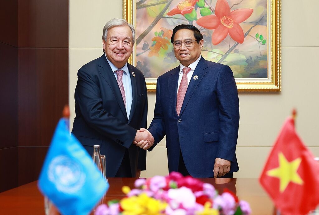 | Le Premier ministre Pham Minh Chinh (droite) et le secrétaire général de l'ONU Antonio Guterres. |
