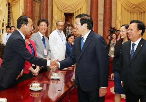| Le président Truong Tân Sang reçoit les délégués participant à la 7e Conférence régionale d'Asie-Pacifique de solidarité avec Cuba, le 9 septembre à Hanoi |