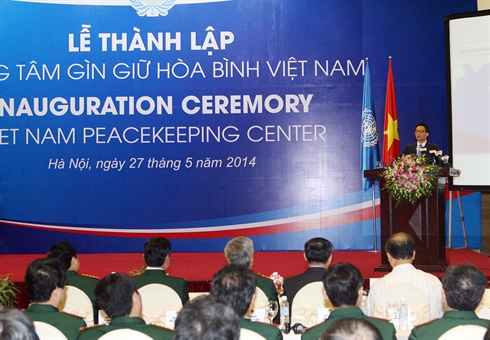 | Le vice-Premier ministre Vu Duc Dam à la cérémonie inaugurale du Centre de maintien de la paix du Vietnam, le 27 mai à Hanoi. Photo : Trong Duc/VNA/CVN |