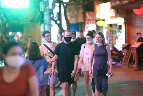 | Des touristes étrangers dans le Vieux quartier de Hanoï. |