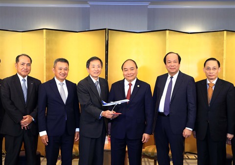 | Le Premier ministre Nguyên Xuân Phuc (3e à droite) et le président du groupe de l’ANA, Shinobe Osamu. |