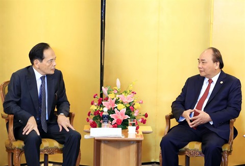 | Le Premier mininstre Nguyên Xuân Phuc (droite) et le président du groupe AEON, Okada Motoya. |