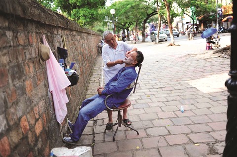 | Coiffeur dans la rue (un exemple montrant qu'il n'y a pas de sot métier). |