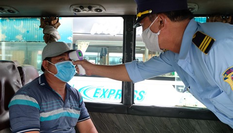 | Mesurer la température corporelle à bord d'un car à Nha Trang dans la province de Khanh Hoà. |