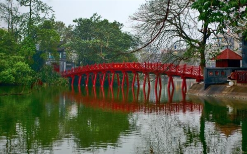 | Le pont Thê Huc à Hanoi. Photo : CTV/CVN |
