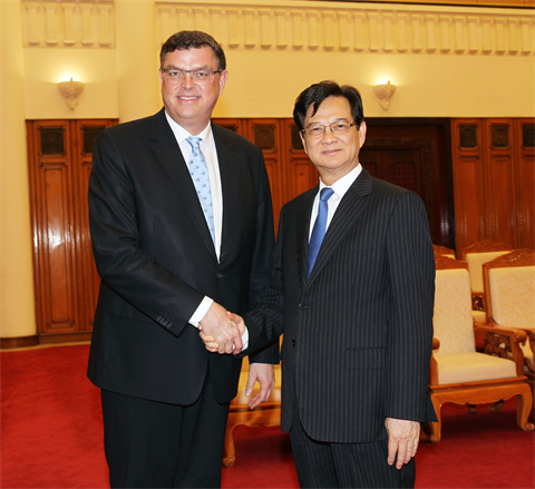 | Le Premier ministre Nguyên Tân Dung (droite) et le ministre danois du Commerce extérieur et de la Coopération au développement Mogens Jensen, le 19 janvier à Hanoi. |