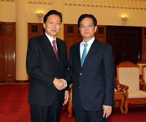 | Le Premier ministre Nguyên Tân Dung (droite) et l'ancien Premier ministre japonais Hatoyama Yukio, le 29 octobre à Hanoi. |