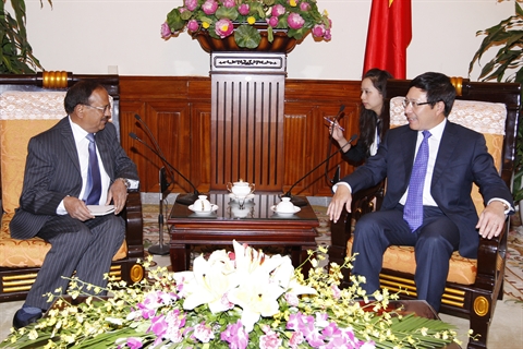 Pham Binh Minh, en recevant vendredi 3 avril à Hanoi le conseiller de la sécurité nationale de l'Inde, Ajit Kumar Doval, en visite de travail au Vietnam, a affirmé que son pays prenait toujours en haute considération ses relations d'amitié traditionnelle et son partenariat stratégique avec l'Inde.