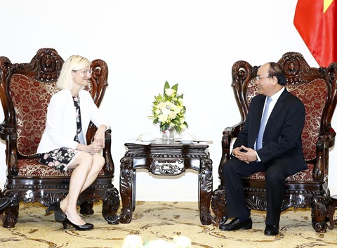 | Le Premier ministre Nguyên Xuân Phuc reçoit le 5 mai à Hanoï la ministre danoise de la Coopération pour le développement Ulla Tornas. |