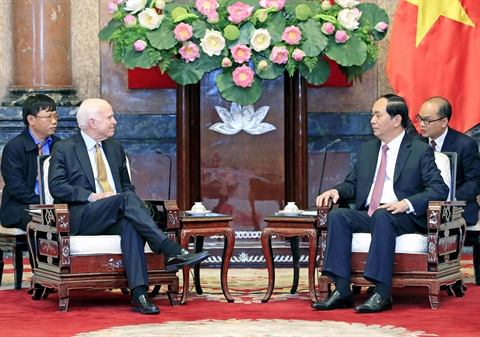 Saluant la visite au Vietnam du sénateur John McCain, le président Trân Dai Quang a apprécié et remercié le sénateur John McCain et les amis américains pour leurs contributions importantes à la promotion des relations de plus en plus approfondies, effectives et efficaces entre les deux pays, sur le plan tant bilatéral que régional et international.