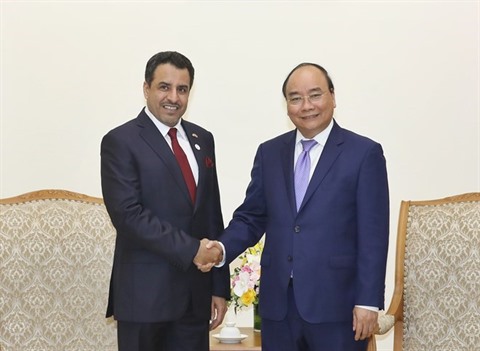 | Le Premier ministre Nguyên Xuân Phuc (droite) et le nouvel ambassadeur des Émirats arabes unis au Vietnam, Obaid Saeed Bintaresh Al Dhaheri. |