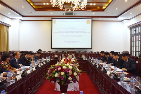 | Séance de travail entre le ministère vietnamien de la Justice et la délégation du Département politique du ministère chinois de la Justice, le 22 septembre. |