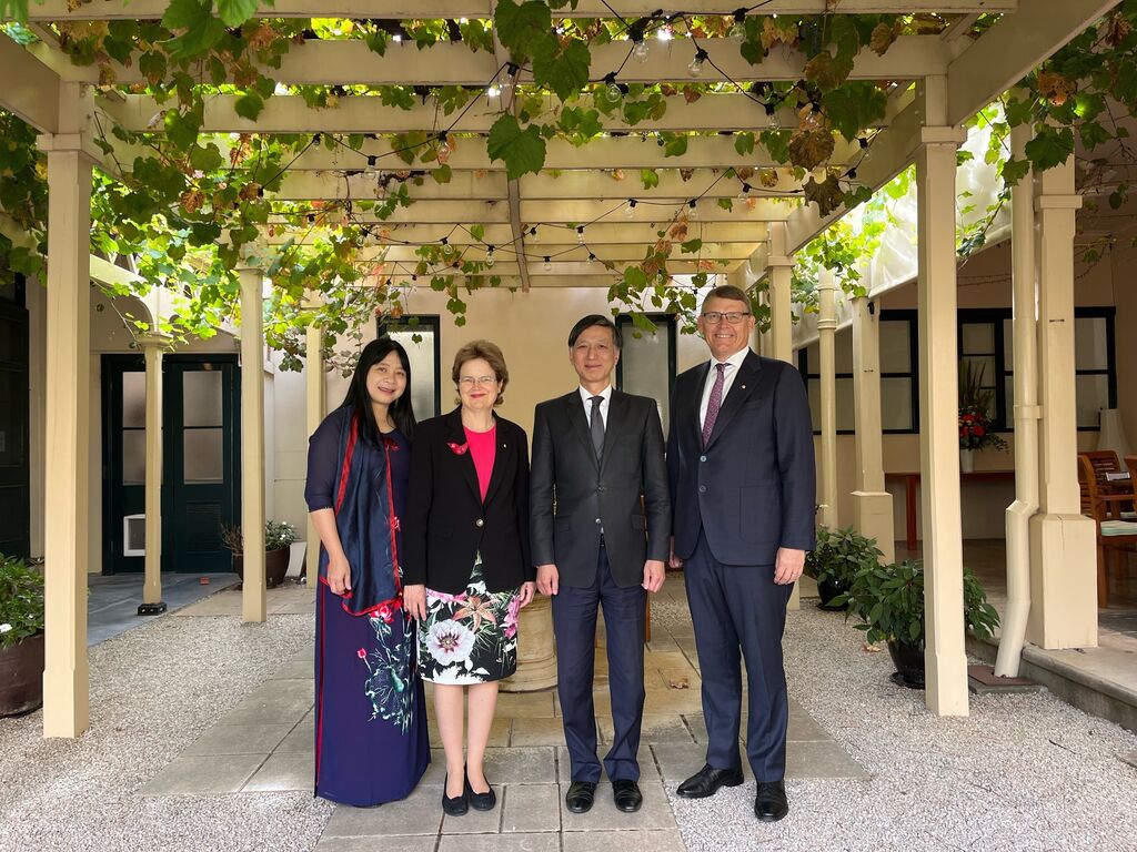 | La gouverneure d’Australie-Méridionale, Frances Adamson (2e à gauche) et l’ambassadeur vietnamien, Nguyên Tât Thành (2e à droite). |