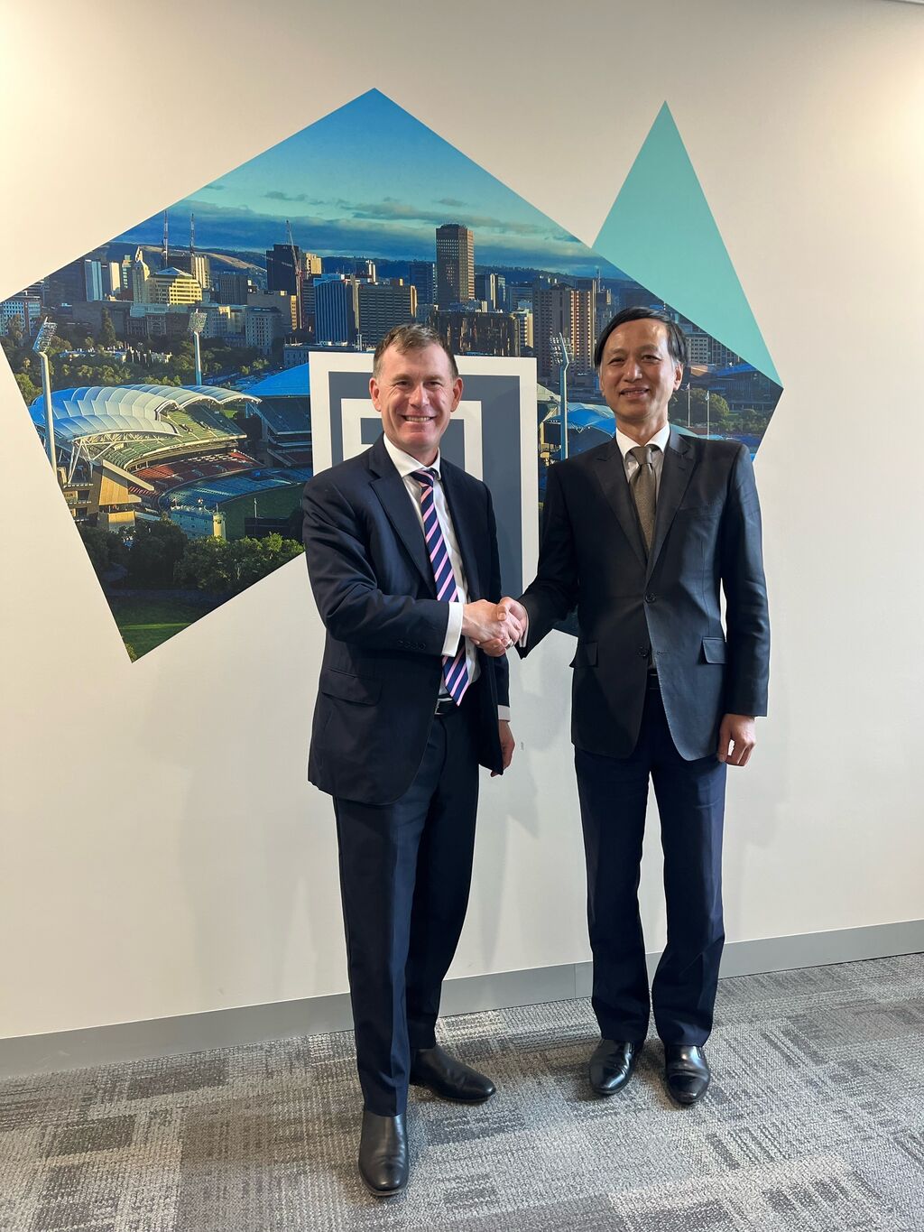 | Nick Champion, ministre du Commerce et de l’Investissement d’Australie-Méridionale (gauche) et l’ambassadeur vietnamien, Nguyên Tât Thành. |