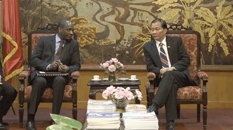 | Le vice-président de la VCCI, Hoàng Quang Phong (droite), reçoit l’administrateur de l’OIF, Adama Ouane. |