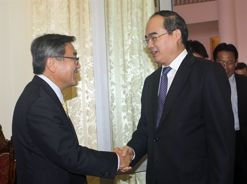 | Le vice-Premier ministre vietnamien Nguyên Thiên Nhân (droite) reçoit le directeur de l'Institut des sciences et des technologies de la République de Corée, Kil Choo Moon, le 9 octobre à Hanoi. |