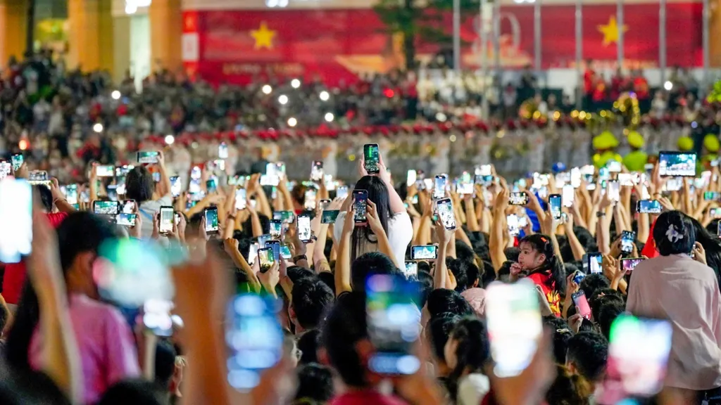 | Des centaines d'appareils mobiles ont filmé simultanément un événement à Hanoï. |