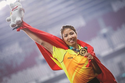 | La sauteuse en longueur Bùi Thi Thu Thao est une sportive prometteuse de la sélection nationale d’athlétisme. |