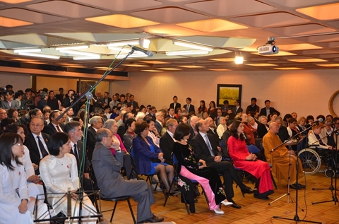 | Cérémonie célébrant le 40e anniversaire de la libération du Sud et de la réunification nationale, le 27 avril au siège de l’ambassade du Vietnam à Paris. |