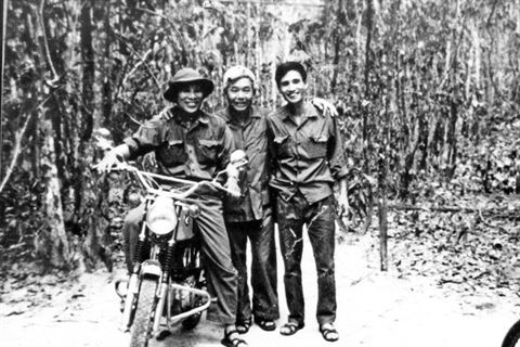 | Trân Mai Hanh (droite) dans une forêt à Tây Ninh (Sud), le 29 avril 1975. |