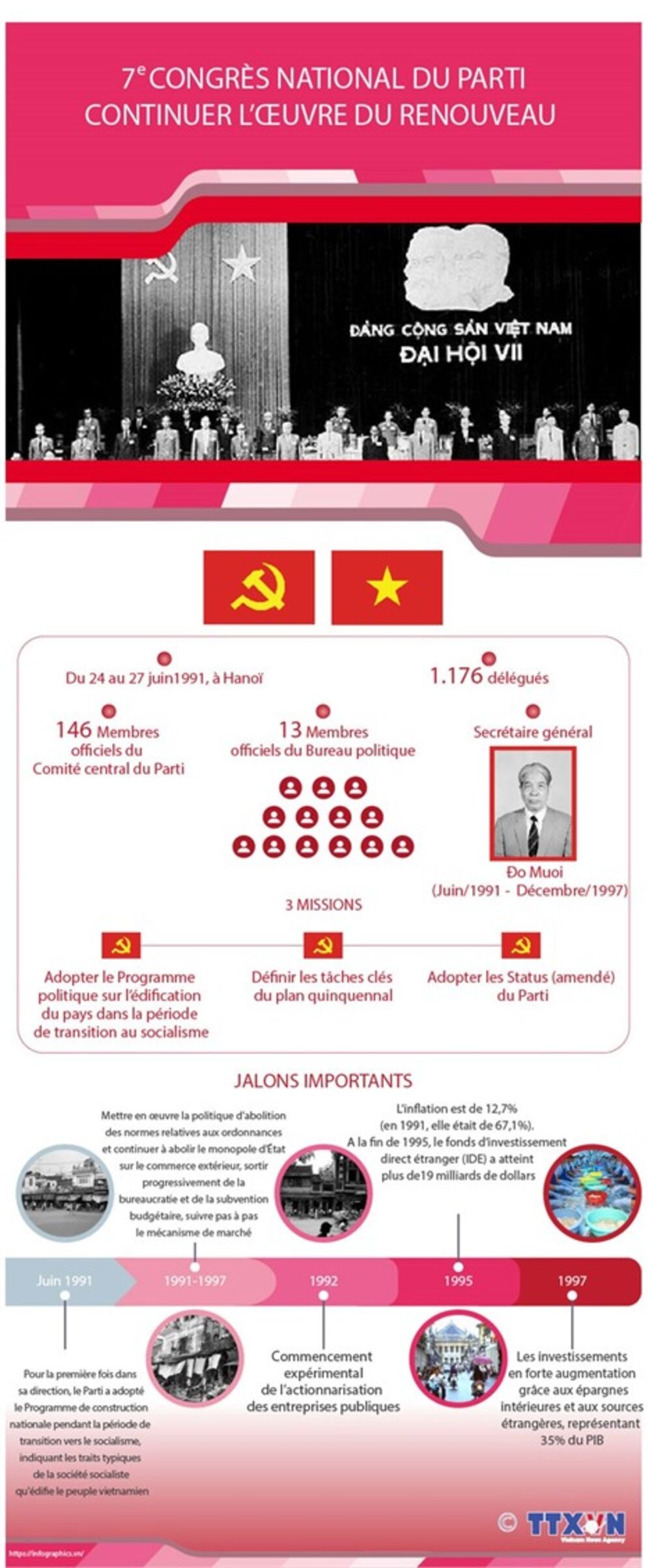 | Le VIIe Congrès national du Parti s'est tenu du 24 au 27 juin 1991 à Hanoï. |