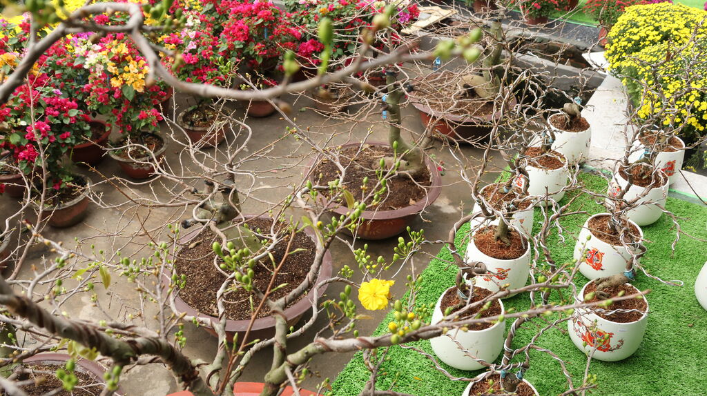 Selon Bùi Ngoc Duc, la majorité des abricotiers en pots et bonsaïs sont destinés à la location pour les festivités du Têt, avec un retour prévu après les fêtes pour un entretien en vue de l’année suivante. Pour cette catégorie, les clients réservent généralement à l’avance, mais ne récupèrent leurs arbres qu’à l’approche du Têt.